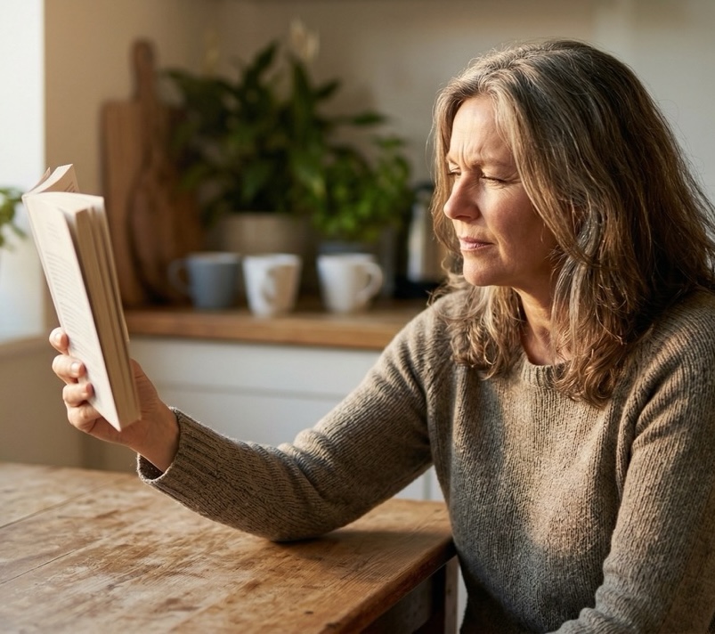 Un patient presbyte a des difficultés à lire de près, à partir de 45 ans (en moyenne). Le vieillissement naturel de l’œil (et du cristallin) fait que l’accommodation qui permettait la mise au point en vision de près (comme celle d’un appareil photo quand on veut prendre une photo proche) faiblit et la mise au point ne se fait plus correctement. On peut bien sûr être myope, hypermétrope et/ou astigmate en plus. On adapte en principe des verres progressifs pour n’avoir qu’une paire de lunettes. Les myopes voient très bien de près sans lunettes, les hypermétropes sont gênés très tôt, vers 42 ans pour la lecture.